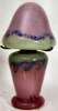 mottled pink glass with bands of blue and celadon green, etched march 'Vasart'