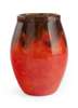 glass, red with dark brown crest along rim, some aventurine inclusions