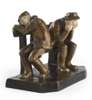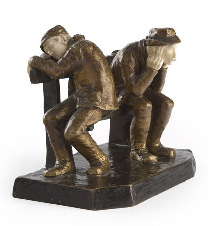 bronze and ivory, cast as two workers seated on a bench, signed in the bronze