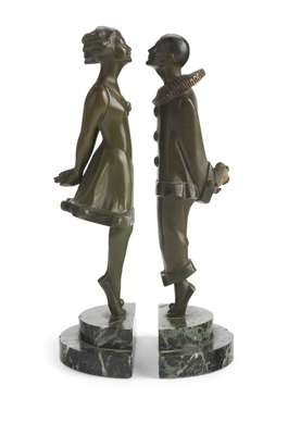 patinated bronze, raised on demi-lune stepped marble base, signed in the bronze (2)