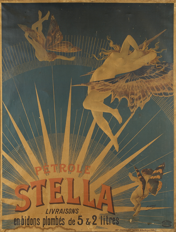 Pétrole Stella livaisons en bidons de 5 & 2 litres. Paris: Courmont Frères c. 1897, approx 98cm by 128cm; Guillaume, A. Duclerc. Paris, c.1890's, approx 98cm by 128cm, both posters framed, linen backed, browning across image, water stain along bottom edge, patches of wear and cracking (2)