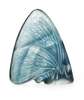 frosted glass with original blue staining, blank seal, etched script mark 'R. Lalique'
