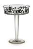 painted glass, the circular shallow bowl painted in gilt and black enamel with a procession of fauns, the tapered facetted stem on circular spreading base
