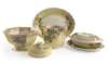 comprising; vegetable dish & cover, vegetable dish & associated cover, 4 dinner plates, 5 dessert bowls, 4 graduated ashets, 5 side plates, 3 assorted jugs, 3 assorted bowls and covers, each decorated with fruit and blossom on a yellow ground, painted marks; also assorted MAK' MERRY wares including 2 salt shakers, 1 pepper shaker, 1 mustard pot and cover, a preserve jar & cover, 4 assorted bowls, various patterns, painted marks (qty)