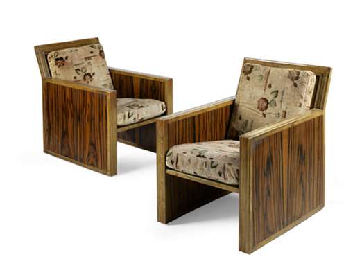 PAIR OF BEECH AND PALISANDER WOOD ARMCHAIRS
