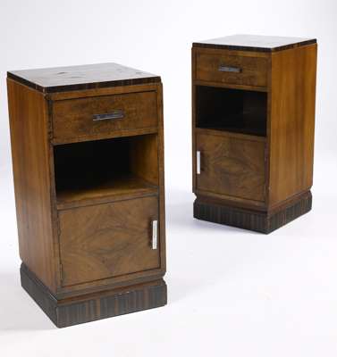PAIR OF WALNUT BEDSIDE CABINETS, 1930S