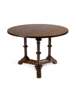 the circular top above three turned legs with ebonised collars raised on cross stretchers with chamfered curved feet, stamped marks