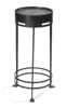 the shallow circular planter on strap legs linked by a stretcher and raised on pad feet