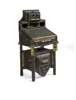 the wooden carcass covered with mosaic of coconut shells, brass bound