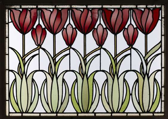 each depicting a frieze of red tulips, later framed (6) 109cm wide, 76cm high (2 panels), 82cm wide, 76cm high (2 panels), 76cm wide, 71cm high (2 panels)