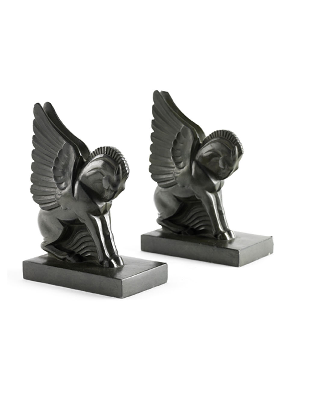 cast in the form of stylised Pegasus figures, signed in the bronze (2)
