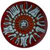 each painted with absract forms, painted and printed marks, decorators marks include Pamela Bevans (Newman) (3)