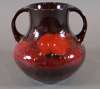 a flambe twin handled ovoid vase, painted in colours, impressed marks, signed in blue,