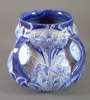 with four applied handles, painted in shades of blue (star crack to base), printed marks, signed in green,