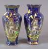 of faceted form, printed and painted in gilt and colours with windmills among trees on a deep blue ground, printed and painted marks(2)