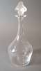 each of ovoid form with tall, slender neck, the stoppers moulded in frosted glass with entwined figures, etched marks (4)