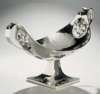 with allover beaten finish, the bowl of eliptical form pierced to the ends and chased with leafy branches, raised on spreading square section base with riveted decoration, marks for Birmingham 1916