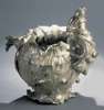 of shaped ovoid form cast a lily pond with applied leaves and lizard and surmounted to the rim with the figure of a mermaid seated on a conch shell, impressed marks