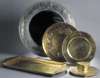 by John Adams, the broad rim with beaded edge pierced with three pierced square clusters, the central bowl with hammer finish