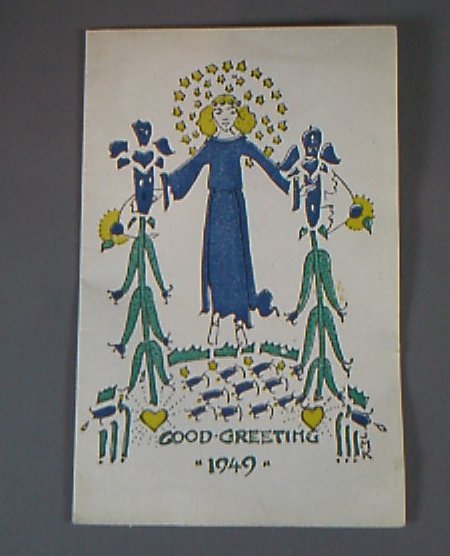 printed in colours with an angel and flowers, and bearing the inscription within 'From the green gate Kircudbright' and initialled in ink E.A.T and J.M.K.T
