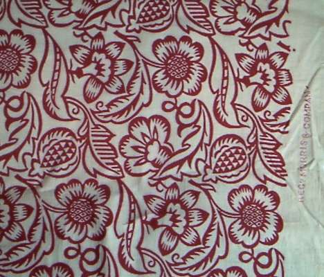 woven in shades of red and green, approx 60cm x 60cm and assorted scraps of the same material also a length of Morris & Co printed cotton fabric, 130cm x 93cm, and two further pieces of Morris & Co fabric (a lot)