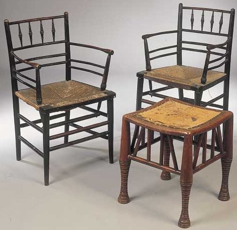 designed by Leonard F Wybard, the concave square top with leather upholstered panel above turned and tapered supports and spindle gallery, on waisted and incised turned legs