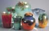 of tapering form with frilled rim, having aventurine inclusions on a pale blue ground