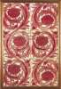 each painted with red lustre with flowering foliage, and set into a walnut firescreen frame, each tile 20.5cm x 20.5cm