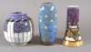painted with clusters of flowers on a vertically striped ground, impressed and incised marks " A L", 16cm high, and two other Royal Doulton stoneware vases (3)