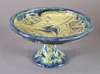 a Florian ware tazza, painted in green on a blue ground, signed in green,
