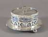 with electroplated cover and stand, painted in shades of blue, printed marks, initialled in green,