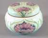a tobacco jar and cover, painted in colours on a pale blue ground, printed mark, initialled in green,