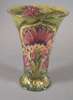 a tapering cylindrical vase, with applied foot, painted in colours, impressed mark, signed in green,