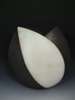 coiled stoneware, with angular neck and black and white geometric design glaze, impressed monogram