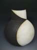 coiled earthenware, black and white geometric glazes, impressed monogram