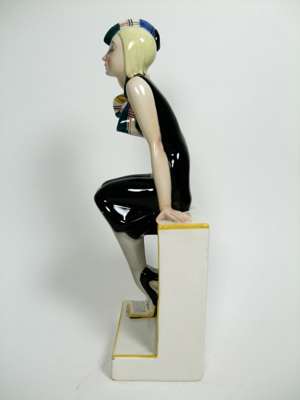 glazed earthenware, painted marks 'Lenci Torino Italy' with monogram, chipped