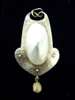 beaten silver, of Celtic Revival form in the manner of Archibald Knox, set with mother of pearl oval panel and with seed pearl drop, stamped marks