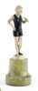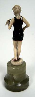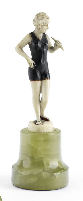 painted ivory, raised on an onyx base, signed 'F. Preiss' on the ivory (parasol lacking)