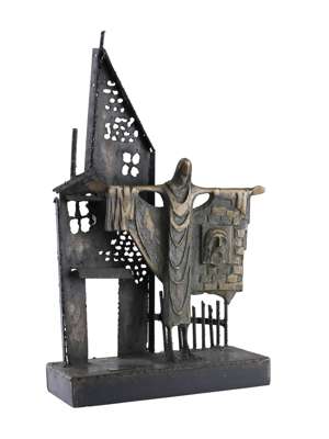bronze and steel, applied plaque