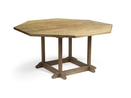 oak, with octagonal planked to on square chamfered supports linked by stretchers