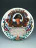 painted glazed porcelain, of circular form, painted in colours with a portrait of Lemuel Gulliver and bearing inscription "Drake and Columbus long att th' unknown Shore, Vespucci, at his best - but half seas o'er ...etc." inscribed verso 'Joseph Crawhall/ Newcastle on Tyne/ April 1876' with bearded man monogram
