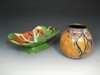 glazed earthenware with applied enamels and gilt embellishments, Rosetta pattern no. 3505, printed and painted factory marks, 15cm high; A CARLTON WARE TWIN-HANDLED BOWL, EARLY 20TH CENTURY, glazed earthenware with applied enamels and gilt embellishments, Parkland pattern no. 3524, printed and painted factory marks, 31cm across (2)