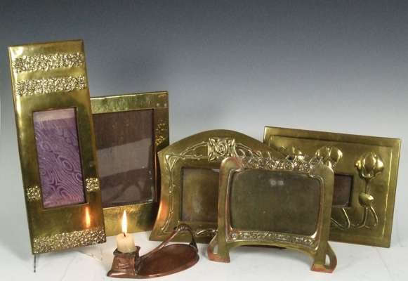 FIVE ARTS & CRAFTS STRUT PHOTO FRAMES, CIRCA 1910