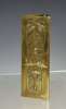 brass, of triangular section, repoussé decorated with a flowering fuchsia, bears monogram