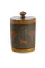painted wood, of cylindrical form, the cover with ball finial, painted with a frieze of animals