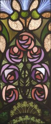 STAINED AND PAINTED GLASS PANEL, CIRCA 1910