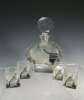 clear glass, comprising a decanter and stopper and four glasses, each with printed design depicting an ocean liner (6)