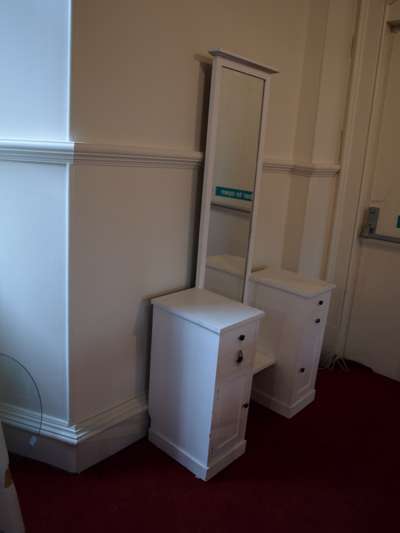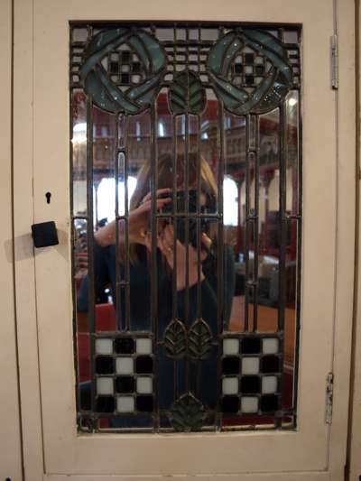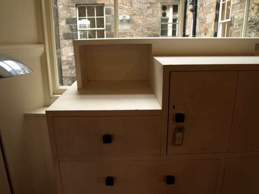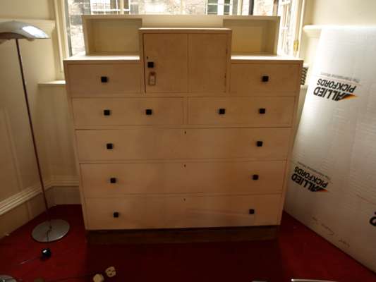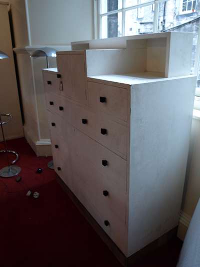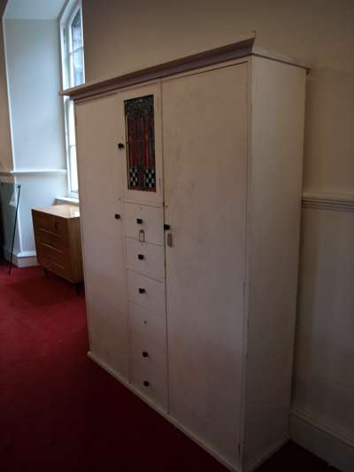 Note; Bears label inside wardrobe; "Designed by C.R. Mackintosh 1868-1928. In possession of W.P. Douglas Esq., who executed decorative work for C.R.M. Other examples of C.R.M's work may be seen at Glasgow University, School of Art etc. See "Charles Rennie Mackintosh" by Thomas Howarth/ Routledge, Kegan Paul, Ltd "