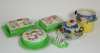 glazed earthenware, two with rectangular covers and dishes, one circular with associated base, each cover painted with flowers, two bases bear painted makers marks, largest 20cm across; also a BOUGH toast rack and biscuit barrel (cover lacking); and a chocolate cup, cover and stand, painted mark (11)