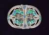 silver and enamel, pierced and cast as stylised birds and flowering plants, hallmarked Birmingham 1907 (converted from a belt buckle)
